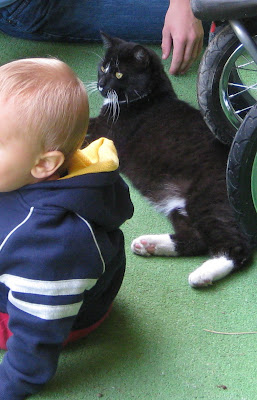 He seemed to have been especially taken with our little guy. Anytime the little guy was out in his play yard, country kitty would be found right with him.